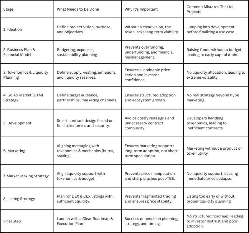 Most crypto projects overpay or get scammed because they skip the fundamentals. Here is the exact 8-stage chronology every token project must follow before writing a single line of smart contract code.
